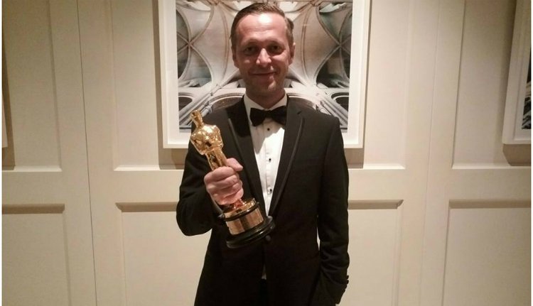 Molnár Levente az Oscar-díjjal a kezében