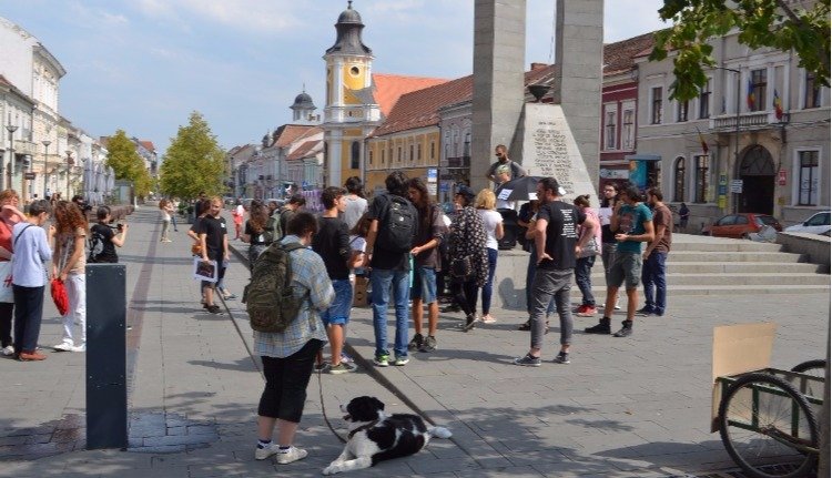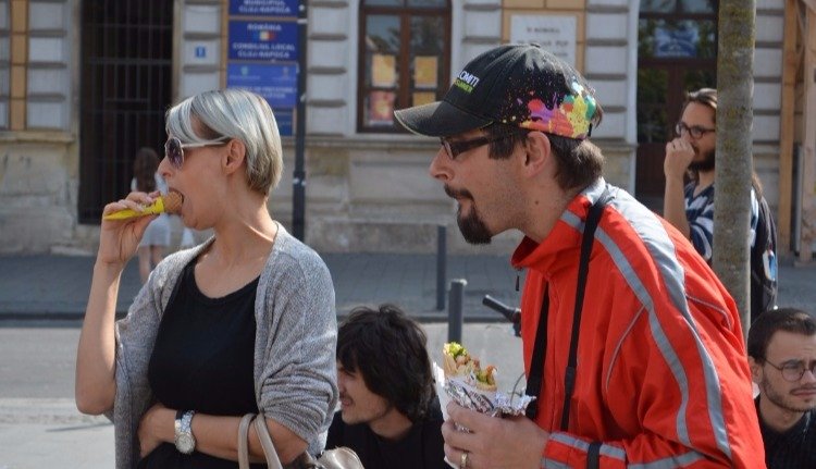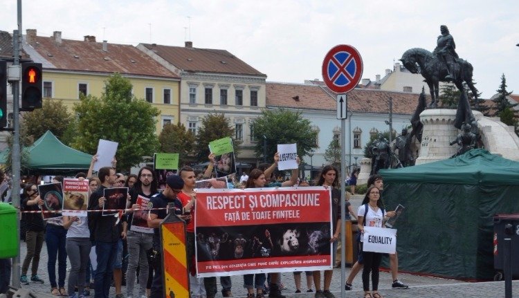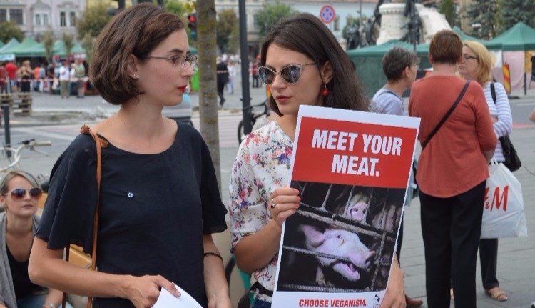 Szombat kora délután, még sütött a nap, bár a felhők már elkezdték a gyülekezést odafönt az égen. Kolozsvár főtere zsongott a helybeliektől és turistáktól, Mátyás király szobra előtt vásárosok árulták portékáikat. Odébb, a Deák Ferenc utca elején elhelyezett memorandista emlékmű előtt a vegánok is gyülekeztek. Meg pár vegetáriánus. Meg pár húsevő (emberek és kutyák egyaránt). Olyan negyvenen. Hogy megtartsák az első hivatalos romániai vegánfelvonulást.