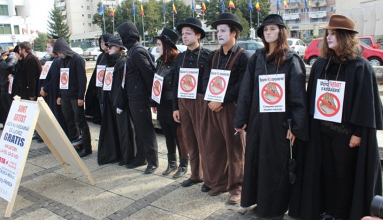 Hatásos volt a szatmári színészek egy hetes japán sztrájkja és keddi utcai performansza: megkapják elmaradt augusztusi fizetésüket a színház alkalmazottai.