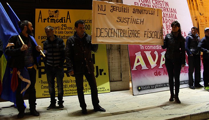 Egyes transzparensek fiskális decentralizációt követeltek, ugyanakkor az 1918-ban egy napig létezett Bánsági Köztársaság nem hivatalos zászlója is előkerült (zöld alapon fehér kereszt).