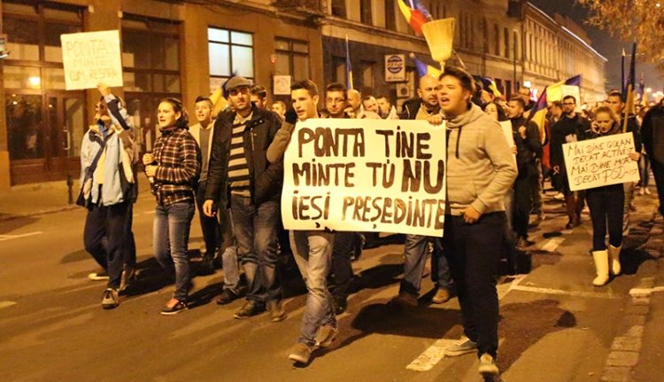 Le a kommunizmussal! Le Pontával! Ponta, ne feledd, az ország nem a tied! PSD=PCR! – skandálta a tömeg, mely kiállt a szavazáson való részvételben akadályozott külföldön élő román állampolgárok mellett is.