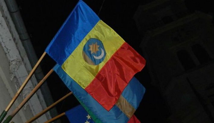 A fotót Pap István készítette Tőkés László nagyváradi EP-irodájánál, amelynek erkélyére az európai parlamenti képviselő kitűzte a romániai forradalom lyukas zászlaját is, a már kint lévő uniós, magyar és székely mellé.