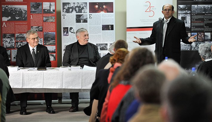 A menyői gyülekezet rövid verses-dalos műsorát követően a falu kultúrházában folytatódott az emlékünnepség, ahol a Temesvárról Európába vándortárlat több pannóját is felállították. Ezt Tőkés Máté szervező mutatta be az alkalmi köszöntések után. Felolvasták Semjén Zsolt magyar miniszterelnök-helyettesnek a menyőiekhez és volt lelkészükhöz intézett jubileumi üzenetét, és idéztek Wetzel Tamás nemzetpolitikai államtitkár-helyettes leveléből is. Szemelvények hangzottak el Bálint Tibornak és Szilágyi Istvánnak a rendszerváltáskor keletkezett írásaiból, előbbit özvegye, Kovács Júlia képviselte, utóbbi személyesen is jelen volt. Molnár Kálmán itt is bemutatta frissen megjelent könyvét, amely Szilágysági szabadító karácsony. Tövisháti emlékezések 1989-2014 címen egy bővített kiadása a korábbi kettőnek.