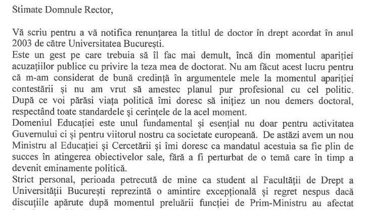 Mint azt megírtuk, Ponta két hete jelentette be, hogy lemond doktori címéről, amelyet a két évvel ezelőtt felröppent gyanú szerint plágium révén szerzett.