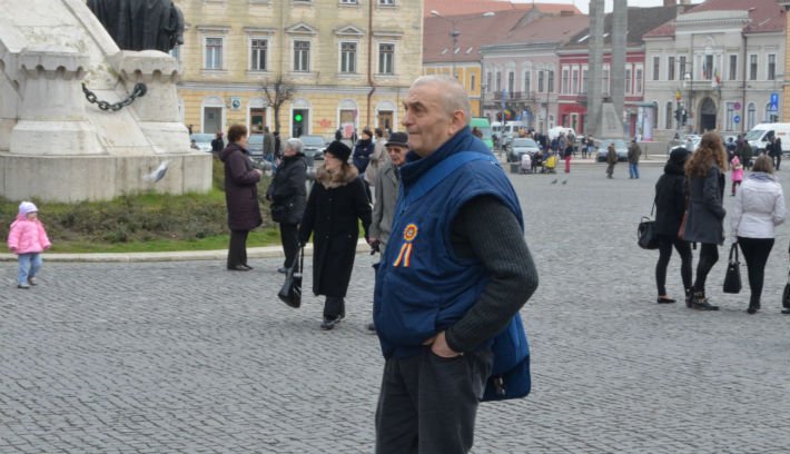 Néhány román hazafi álldogál a téren. Komoran néznek. Az egyik nagy román kokárdát visel. A másik, egy idős hölgy, váratlanul megszólal: Az román zászló? (Az erdélyire gondol.) Hát nem szégyellik magukat?! Fordítva feltenni a román zászlót. A mi országunkban!