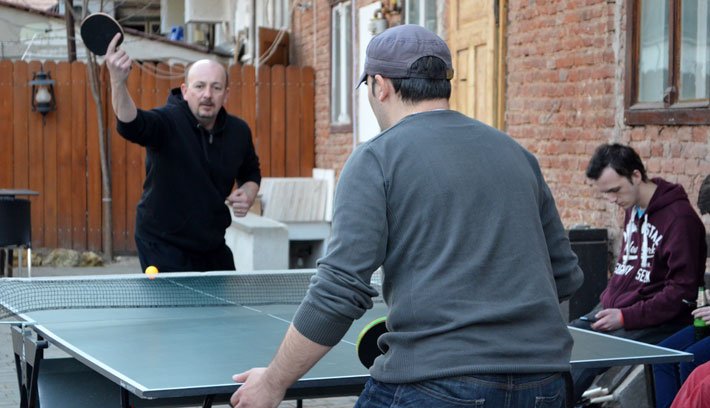 Kolozsváron már 24-én elkezdődött a 27-i színházi világnap: a színészek a sajtósokat látták vendégül asztalitenisz bajnoksággal és bográcsgulyással. A színészek és segítőik elképesztően jól pingpongoznak, miközben nincs is pingpongasztal a színházban.