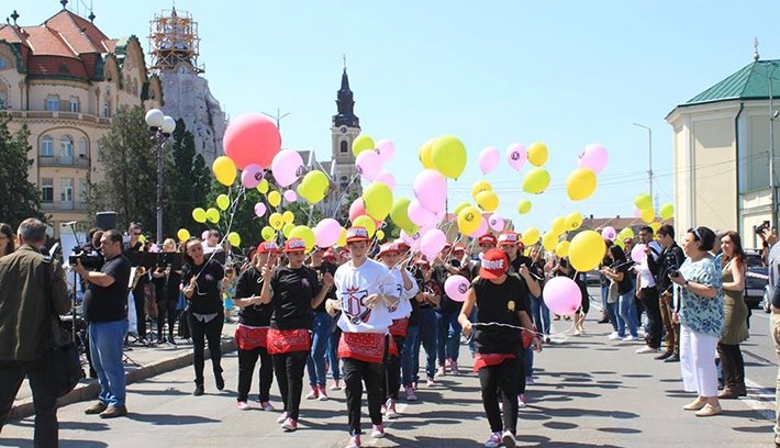 A Nagyváradi Szimfonikus Fúvószenekar Kamara Együttesének zenéjére helyi amatőr tánccsoportok foglalták el ma délelőtt a nagyváradi Szent László hidat. A lufieregetéssel egybekötött látványos akció célja az volt, hogy a város lakóinak tudtára hozzák: fesztivál kezdődik ma Nagyváradon.
