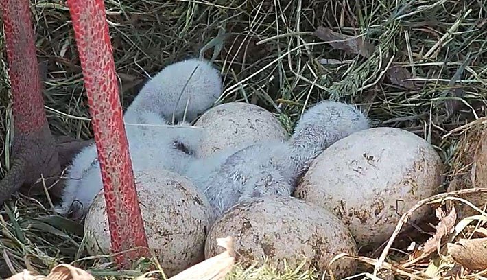 Kibújt két kisgólya a Maros megyei Sáromberkén bekamerázott gólyafészekben. A gólyapár hat tojást költ az idén, ezek közül az első kedden este, a második szerda reggel kelt ki.