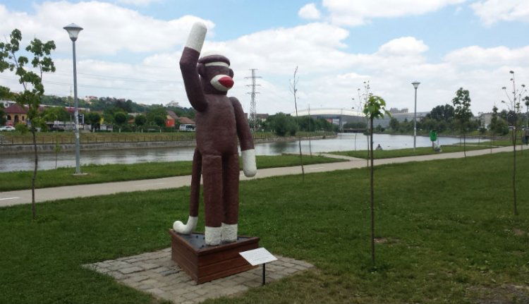 1. A legviccesebb műalkotás a fenti fotón is látható Nelson, a Zoknis Majom (Nelson, the Sock Monkey). A méretes állat Kolozsvár és az amerikai Rockford testvérvárosi viszonyának 10. évfordulója alkalmából került a Szamos-partra.