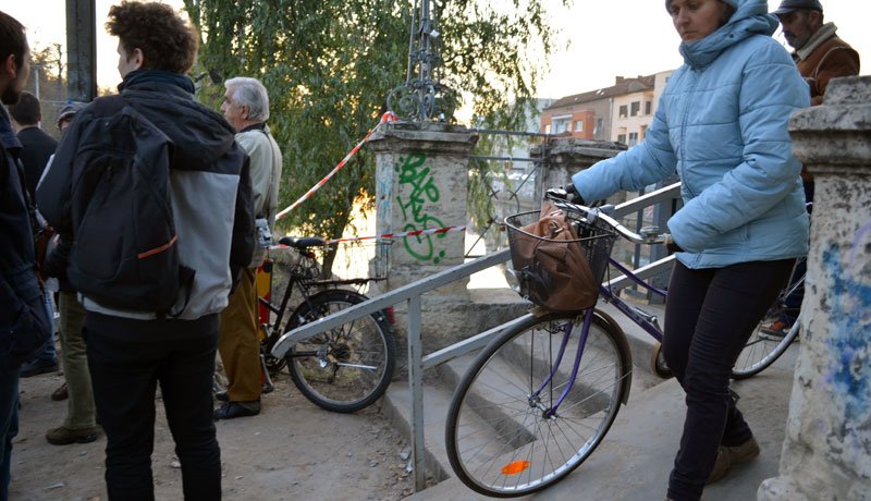 Nagyon át kell gondolni itt a közlekedést, mert gyalogosnak, bringásnak, babakocsinak, kerekesszékesnek egyaránt veszélyes ilyen magasról egyből zsúfolt útra vagy járdára érkeznie.