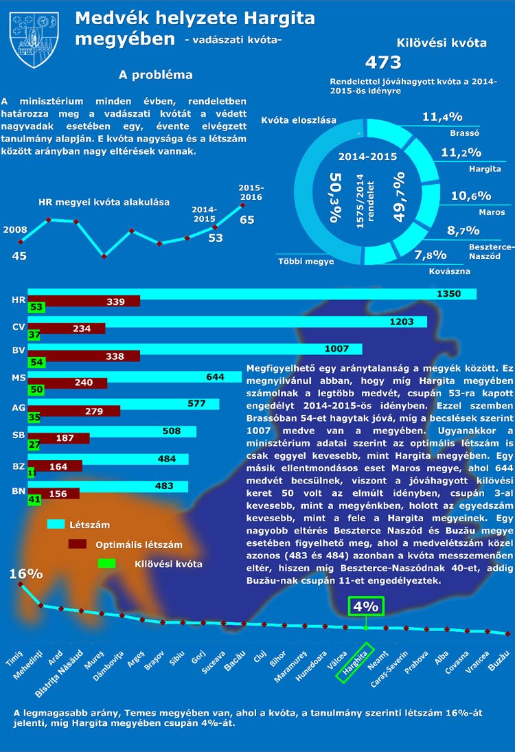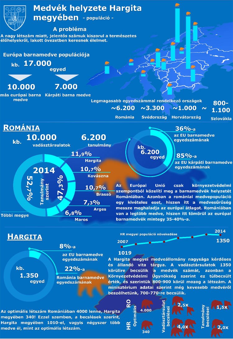 Igazságtalanul és kezelhetetlenül sok medve él Hargita megyében az ország többi részéhez képest, a környezetvédelmi és erdészeti minisztérium nem is nagyon tudja kezelni a túlnépesedési kérdést – derül ki azokból az infografikákból, amelyeket a Hargita Megye Tanácsának Elemző Csoportja készített, és a megyei tanács ma közölt a Facebook-oldalán.