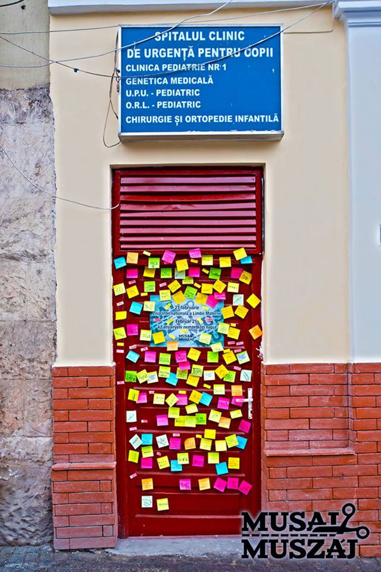 Magyarul, románul, angolul és a Föld veszélyeztetett nyelvein megfogalmazott üzenetekkel „köszöntötte” a többnyelvűségért harcoló Musai-Muszáj civil akciócsoport a Kolozsvári Sürgősségi Gyermekkórházat, amely nem indított belső vizsgálatot a megalázott székelyföldi lány ügyében.