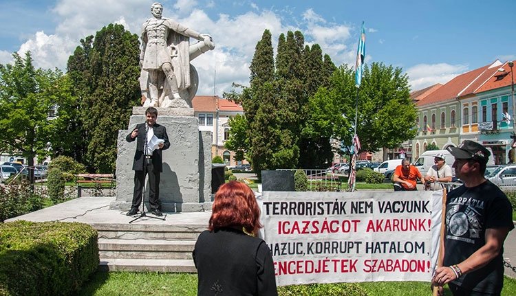 A mintegy másfél órás tüntetésen a felszólalók tiltakoztak az ellen, hogy a Szervezett Bűnözés és Terrorizmus Elleni Igazgatóság (DIICOT) közösség elleni merényletkísérlettel, valamint a robbanóanyagokra vonatkozó szabályok megsértésének a kísérletével vádolja Bekét és Szőcsöt, akik fél éve előzetes letartóztatásban vannak. A megmozdulás végén a résztvevők elénekelték a székely és a magyar himnuszt, a tüntetés incidensek nélkül ért véget.