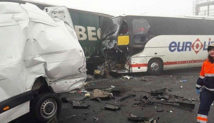 Mint megírtuk, a tömegbalesetben egy kamion és több kisbusz mellett egy Hamburgból Romániába tartó román busz is érintett.
