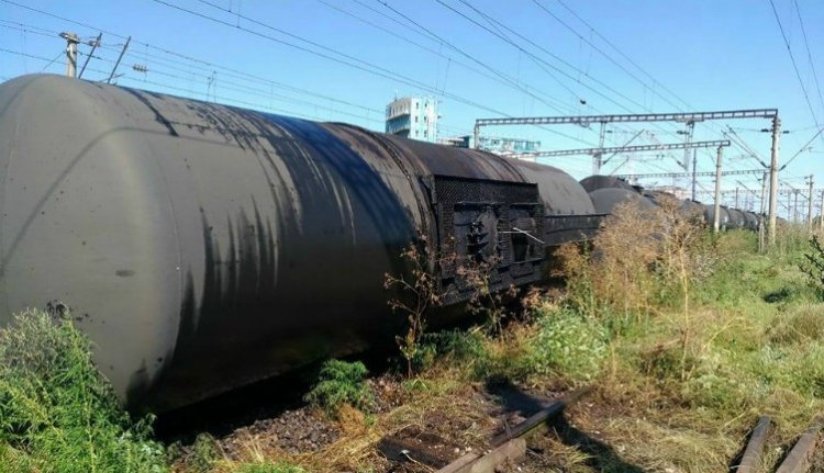A szerelvény folyékony üzemanyagot szállított, két vagonja ugrott le a sínekről.
