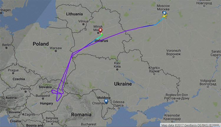 A gép Ukrajnát elkerülve, Fehéroroszországon, Lengyelországon, Szlovákián és Magyarországon keresztül érkezett és a román légtéren át, nyugat felől repült volna Kisinyovba. A gép tett néhány kört Magyarország felett, majd visszarepült és Minszkben szállt le.
