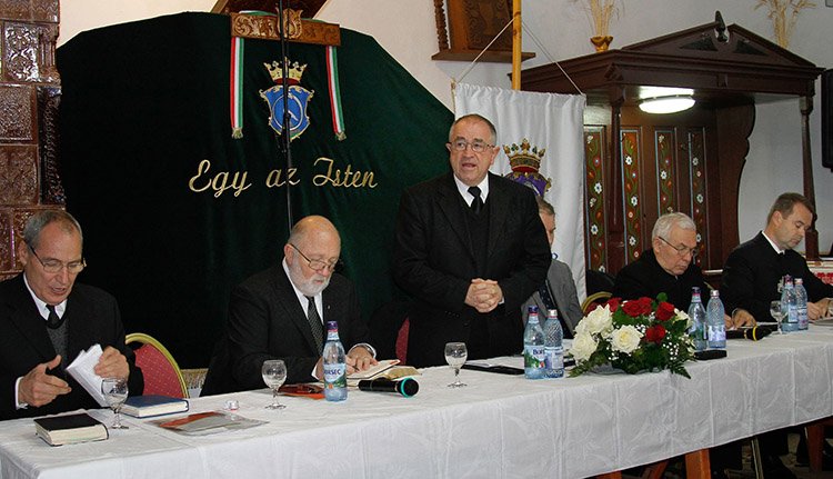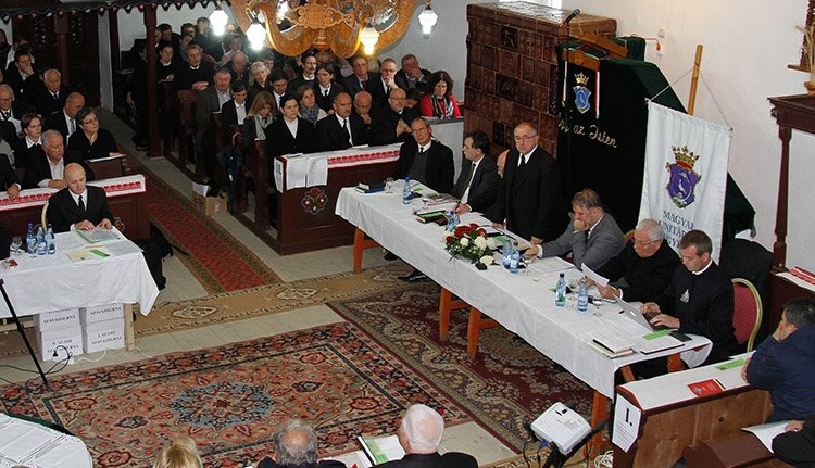 Zsinati vezetők. Középen Bálint Benczédi Ferenc püspök, a jobb szélen Gyerő Dávid.