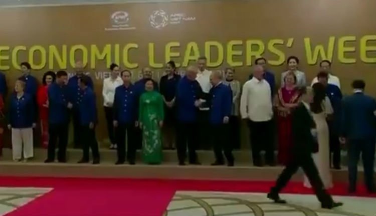 A két elnök a protokollfotózás alkalmából, vietnami népviseletben találkozott egymással, kezet fogtak és néhány szót is váltottak. Ezt követően a csoportkép-beállításon Trump Putyin jobbján foglalt helyet, majd a szertartás végén, mielőtt a APEC-vezetők átvonultak egy közös fogadásra, megérintette az orosz vezető vállát.