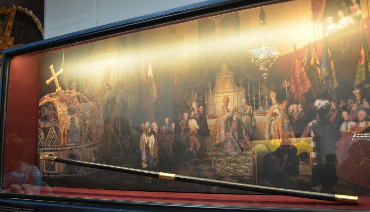 A tárlatot gazdagítja Pálffy Károly Jeromos magyar királyi udvarmester gyémántokkal díszített pálcája, amellyel 1792. június 6-án, a Budán tartott első uralkodókoronázáson, I. Ferenc király szertartásán vezényelte a ceremóniát. Alföldy Ágnes kifejtette: mivel a korona a koronázási szertartások elmaradhatatlan kelléke, úgy gondolták, hogy a kiállításra elhozzák a Szent Korona másolatát.