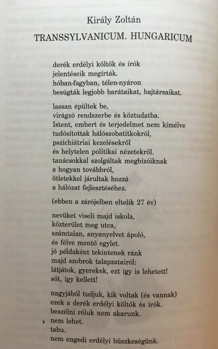 Erdélyről explicit módon túl sok szó nem esett. Viszont a felszín alatt végig ott volt. És akkor tessék, Király Zoltán egyik erdélyes verse. Ahogy szokta, szókimondóan.