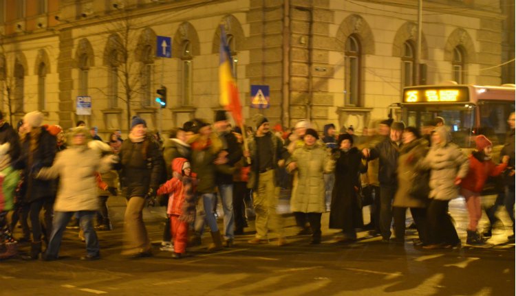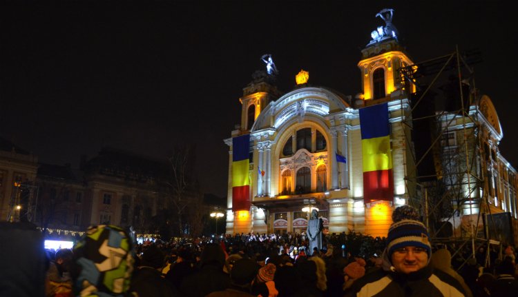 A kis egyesülés egészen friss nemzeti ünnep a mioritikus hazában. Láttuk a tévében, hogy Bukarestben meg Iași-ban tüntetve, hujjogva ünnepeltek a népek, hát megnéztük, hogyan adják meg neki a módját Kolozsváron. Délután négy órától az ilyenkor megszokott népzenei előadások mentek zsinórban a Fő téren. Nem esett nehezünkre sajnálni az előadókat, tekintettel a fogait villogtató téli délutánra. Ám az ünnep fénypontja a szomszéd téren zajlott, este nyolckor.