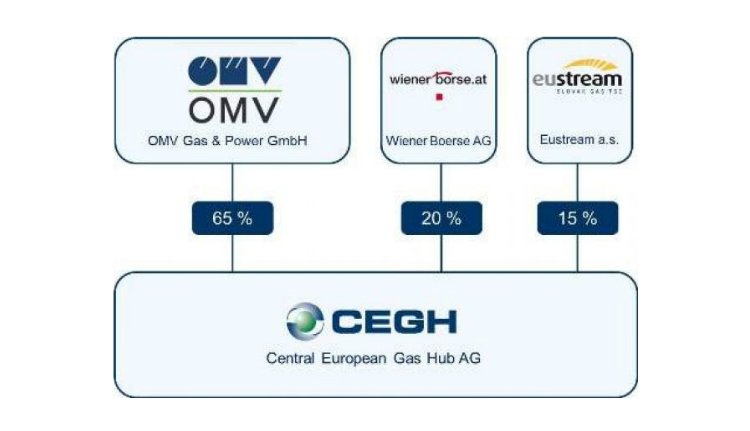 Érdekes a CEGH tulajdonosi szerkezete: a részvények kétharmada az OMV, a legnagyobb román energetikai céget, a Petromot tulajdonló és Románia földgáztartalékainak felét és az ország teljes kőolajtartalékát kitermelő cég birtokában van. 15 százalék a szlovák Eustreamé és további 20 százalék a Bécsi Tőzsdéé (ld. az alábbi ábrát).