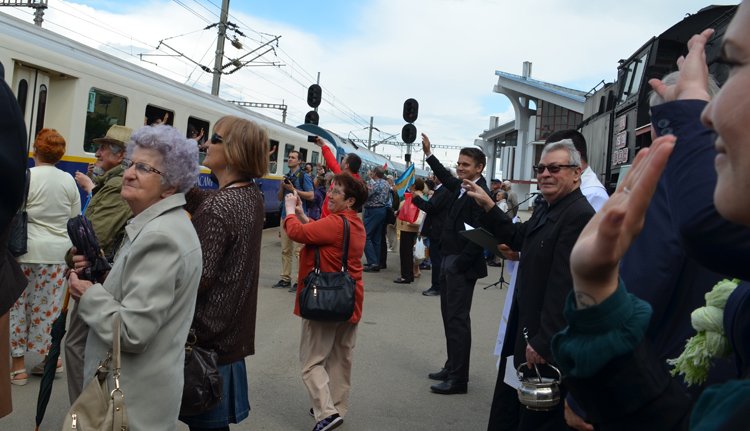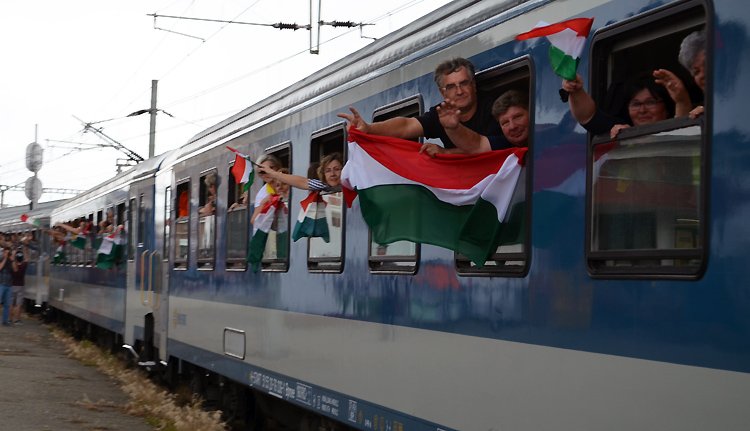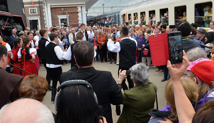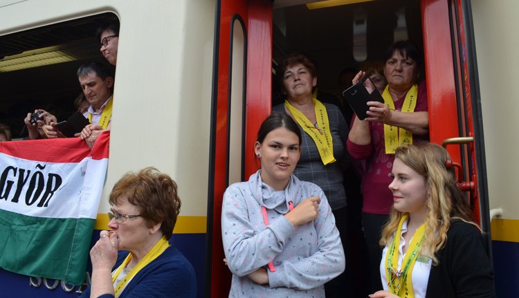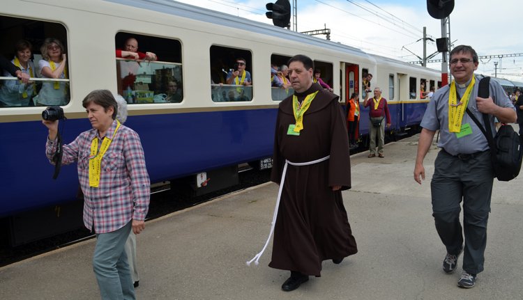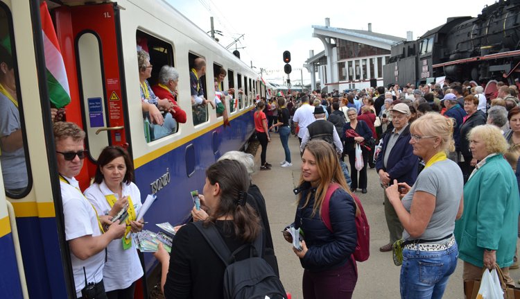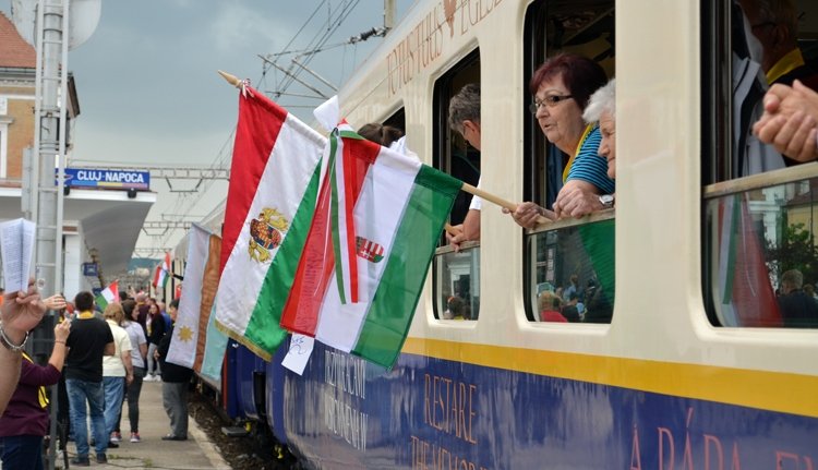 Befutott az első budapesti zarándokvonat, a Boldogasszony a kolozsvári állomásra. Késés és szemerkélő eső oldotta kicsit a megilletődést.