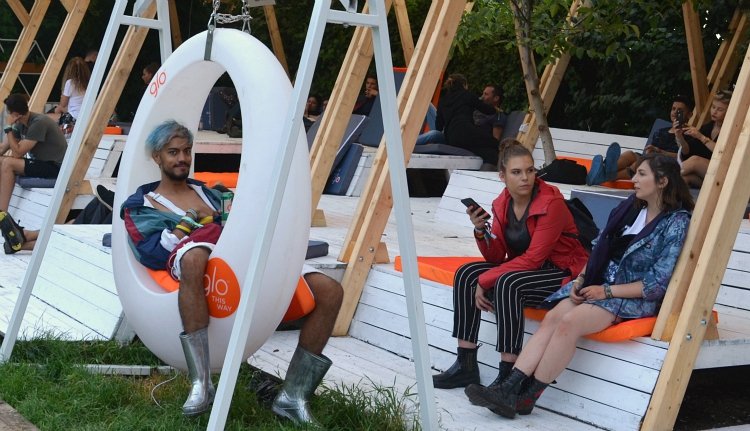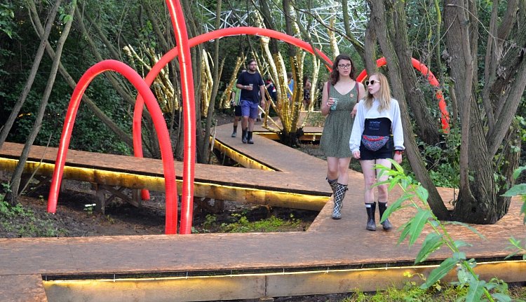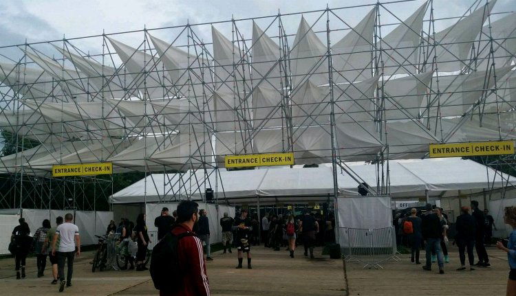 A délutáni eső ellenére a közlekedés nem okoz különösebb gondot, a szervezők számos módon próbálták elejét venni a sártengernek: a helyszíneket kaviccsal, műanyaglapokkal borított sétányokkal kötötték össze. Attól még a gumicsizma kötelező, amint lelépünk az ideiglenes járdáról, tocsogó vízben találjuk magunkat.
