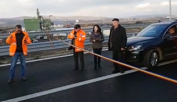Ma délután adták át a forgalomnak az észak-erdélyi autópálya újabb, 14 km-es szakaszát. Az országos közútkezelő vállalat legújabb szokásához híven most is élőben közvetítette az informális avatást: az elsőként odaért két autó sofőrjét kérték meg, hogy vágják át a háromszínű szalagot.