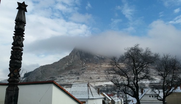 Nemcsak a panziók, a múzeum is zárva, szabadságon az alkalmazott, így a felhők közé vesző Székelykőt fotózzuk.