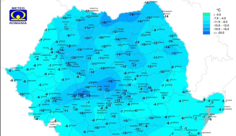 Nem lehetett melegük a nagyszebenieknek sem az éjjel, az egykori szász városban ennél csak egy fokkal volt magasabb a hőmérséklet, - 23 Celsius fok. És újabb egy fokot nyertek a magyarláposiak, a Máramaros megyei településen -22 Celsius fok volt.