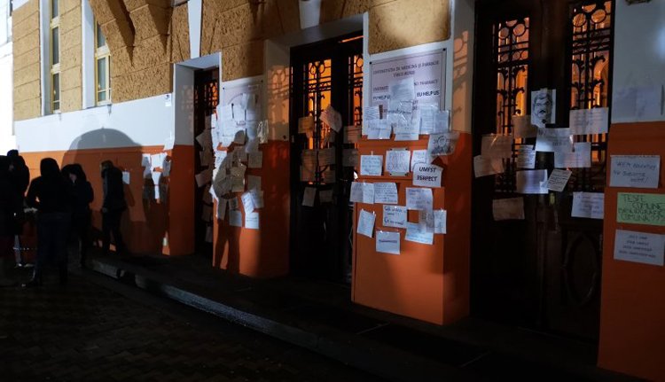A Petru Maior műszaki egyetemmel fuzionált orvosi egyetem hallgatói az új vizsgarend ellen tiltakoztak.