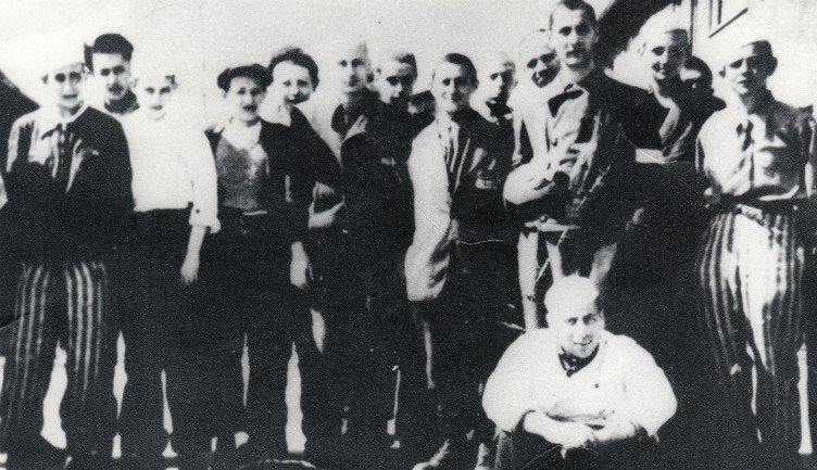 Buchenwald a felszabadulás után, Nussbaum úr jobb felől áll, legszélen | centropa.org