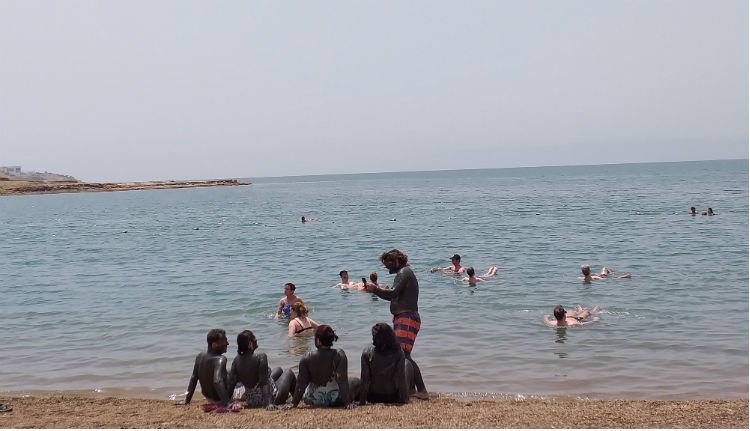 Az a látvány viszont kissé mulatságos, hogy a parton mindeközben turisták tucatjai kenik be magukat tetőtől talpig a fekete, gyógyhatású iszappal, amelyből néhány percnyi „pakolás” felér a legdrágább méregtelenítő kúrával – tiszta ingyen. Azazhogy mégsem egészen ingyen: turisták számára a Holt-tenger – amely azért „halott”, mert a koncentrált sótartalma miatt magasabb rendű élőlények nem élnek meg benne – csak a különböző partmenti hotelek szolgáltatásainak igénybevétele révén hozzáférhető, a nyilvános strandokon ugyanis nem nézik jó szemmel a bikiniben fürdőző nyugati nőket.