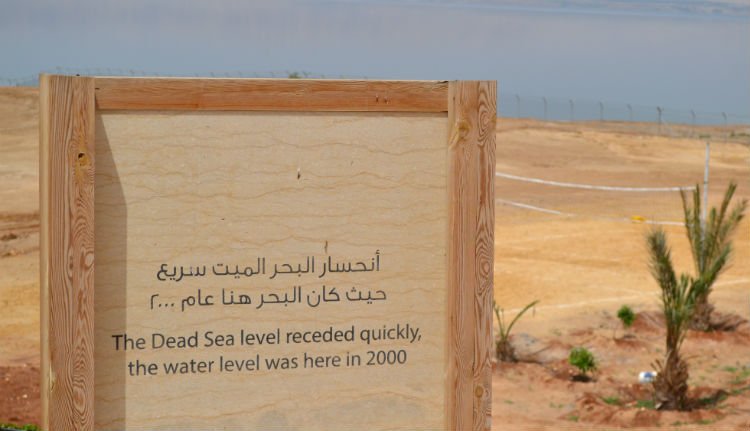 A Holt-tenger partján tett látogatás során drámai módon válik mindez láthatóvá: a Sós-tengernek is nevezett, több bibliai történetben fontos helyszínként szereplő tó vízszintje vészesen apad, különböző természeti folyamatok, illetve az állandó vízkivétel miatt, a tenger – amelynek innenső oldaláról átlátni az izraeli, pardon, ciszjordániai partokra – déli medencéje néhány évtized alatt gyakorlatilag kiszáradásra van ítélve. Az emelkedő parton táblák jelzik a vízszint ötévenkénti-évtizedenkénti apadását: a látvány mellbevágó.