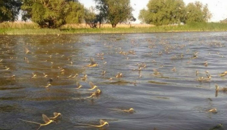 A több millió kérész hétfőn este jelent meg a folyón és három napig tart a párzási időszaka, amit tiszavirágzásként ismerünk. A szerelmi légyott után a rövid életű rovarok elpusztulnak.