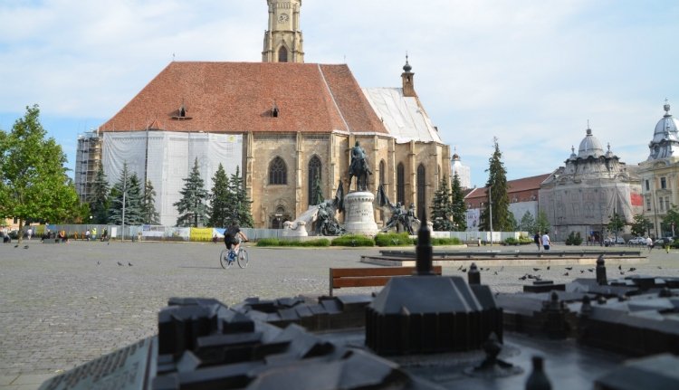 Íme, a mestermű! Pici tájékozódás után világossá válik, hogy a kincses város történelminek nevezett központját kicsit átszabták. Lemaradt a Karolina tér és környéke, meg a Tűzoltótorony és környéke, egyáltalán, a központ északi részének jó sávja. Talán így akarták valahogy ellensúlyozni a magyar épített örökség, főleg a templomok túlsúlyát. Meg persze azzal, hogy bevágták az ortodox meg a görög-katolikus katedrálist. Mert ha nem tették volna, a szegény román szemlélő talán azt gondolhatná, hogy valami külföldi városközpont került az oszthatatlan Románia egyik nagyvárosának kellős közepére.