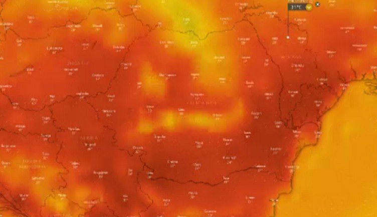 Herkulesfürdőn volt a legmelegebb az országban, a délutáni órákban 36 fokot mértek, de a hőérzetet ennél is magasabb, 44 fok volt. Az ország hőtérképe ma így nézett ki: