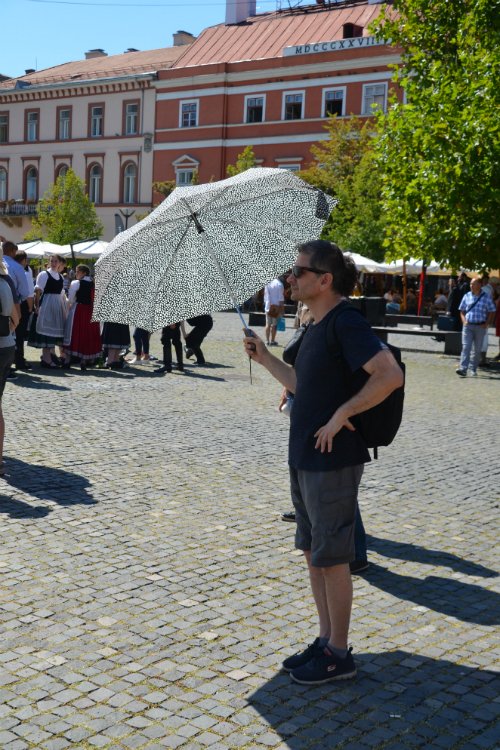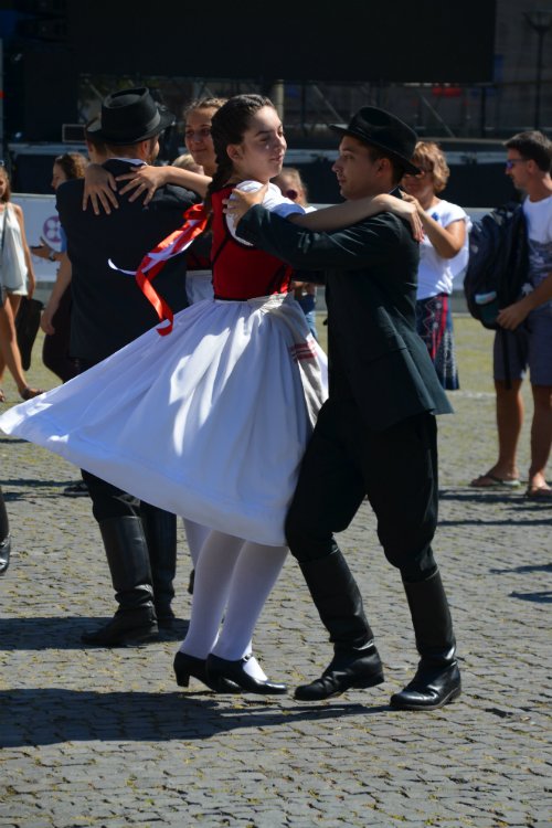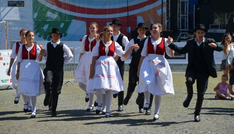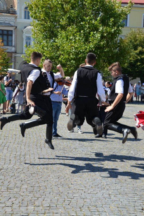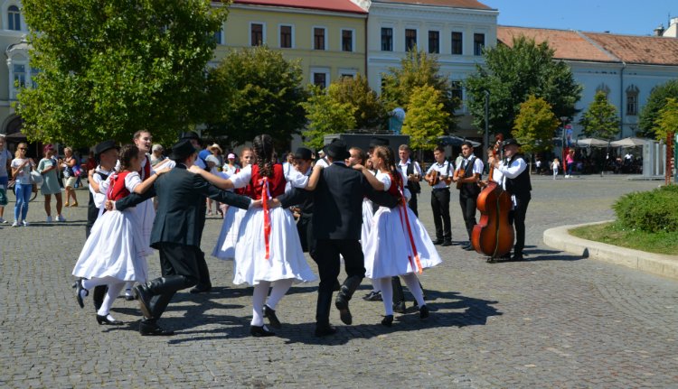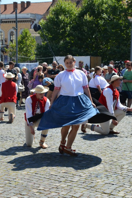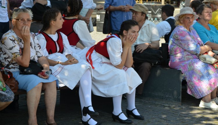 Rendesen megizzadt az az 50-60 ember, aki kedden délben kiment a kincses város főterére, hogy megnézze a 21. Szent István-napi Néptánctalálkozón részt vevő együttesek nemzetközi kavalkádját. És ha a nézők megizzadtak a 30 fokos déli verőfényben, akkor mit mondjunk a fellépőkről, akik lajbiban, hosszú nadrágban, csizmában ropták. Inkább nem mondunk semmit, mutatjuk, amit láttunk, ahogy láttuk: