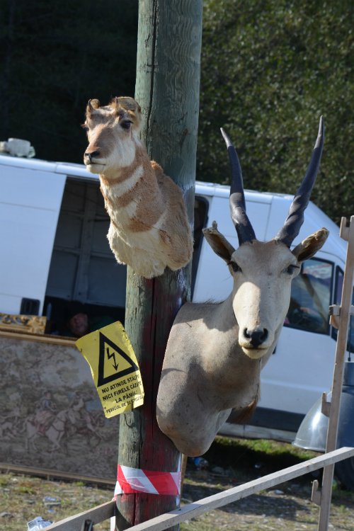 Még egy csendélet, amelynek láttán elakadt a szavunk. Nem is mertünk hozzáérni, nehogy megrázzon. A természettudományos pontosság kedvéért: a jobb oldali fej egy jávorantilopé volt, a bal oldali egy villásszarvú antilopé.