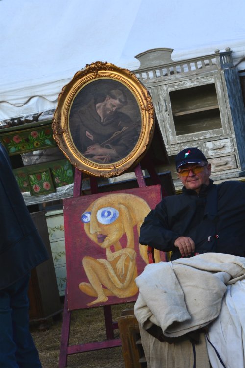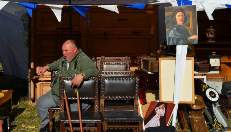 És íme, az újabb sztár: a Vásár Ura, az Antik Királya, birodalma egyik trónján. Nehéz dolga van, hiszen rengeteg hamis biedermeier, neoklasszikus, szecessziós bútordarabot kell lenyomnia a tátott szájú és bukszájú vásárlók torkán. Most éppen pihen, két adok-veszek közt. De látszik rajta, menni fog a dolog, hiszen az anyukáját már kora reggel eladta.