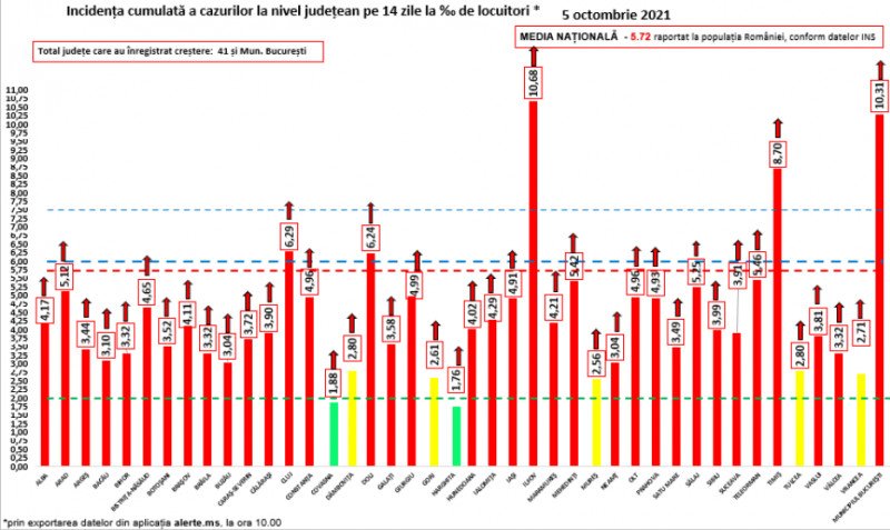 Csak Bukarestből – ahol a fertőzöttségi ráta már meghaladta a 10 ezreléket – több mint 2500 új koronavírus-fertőzést jelentettek, a dobogóra még Ilfov (612) és Kolozs megye (554) fért fel. A listát Kovászna megye zárja ma is, a háromszékiek 34 új esetről számoltak be.