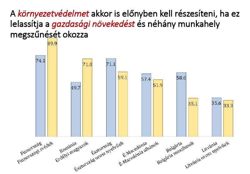 ebben az európai kisebbségek közül csak a finnországi svédek elkötelezettebbek. Legalábbis deklaratív szinten, mert ha konkrét tennivalókról kerül szó (például hogy odaadnánk-e a jövedelmünk egy részét a környezetvédelemért), már csappan némiképp – de tényleg csak némiképp – a lelkesedés.