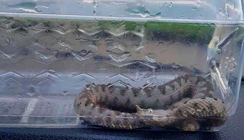 A veszélyes hüllő (amely, ha jól látjuk a fenti fotón, nem is akármilyen vipera, hanem bánsági szarvasvipera) valahogy bejutott az épületbe és az érkező dolgozók ott találták az egyik irodában. Nem tudni, ki ijedt meg jobban, de tény, hogy a vipera ügyesebbnek bizonyult: becsusszant a faburkolat alá.