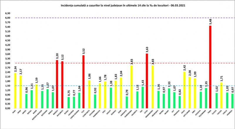 A lakosságarányos fertőzési ráta tekintetében Temes megye még mindig magasan veri a mezőnyt 5,48 ezrelékkel, de Ilfov, Kolozs, Brassó megye és Bukarest is 3 ezrelék fölött van.