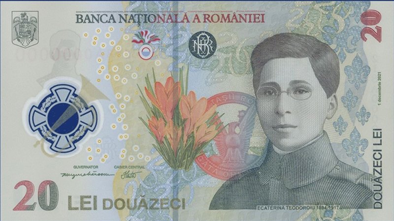 A Román Nemzeti Bank (BNR) december 1-jén, a román nemzeti ünnepen forgalomba hoz egy új bankjegyet. A 20 lejes címletű bankó – nem erdélyi olvasóinknak: kb. 4 eurót vagy 1500 forintot ér – ugyanolyan polimerből készül, mint a jelenleg forgalomban levő többi bankjegy. Azzal a különbséggel, hogy ez lesz az első román bankjegy, amelyen nem valami mord tekintetű férfi néz majd szembe a polgárokkal, hanem egy nő. Mégpedig Ecaterina Teodoroiu (1894-1917) első világháborús hős.