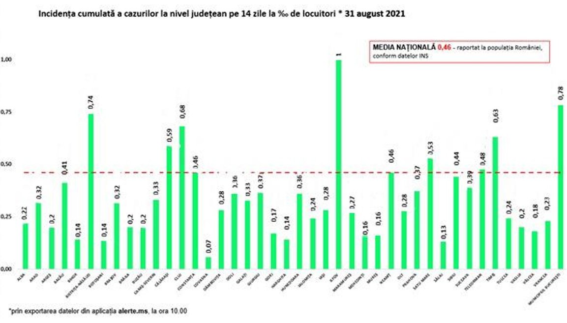 A megyei fertőzöttségi ráták is növekednek, Ilfovban például már elérte az 1 ezreléket, de Bukarest is átlépheti hamarosan ezt a küszöböt.