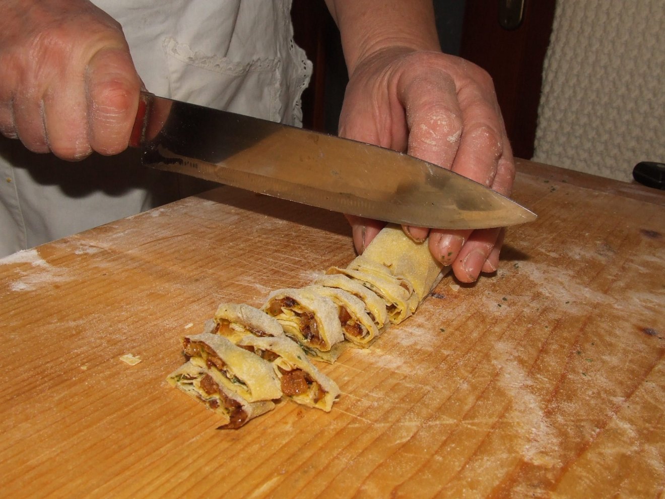 Készül az árvalaskalevesbe való. A töltelék: zsírban párolt szalonna és hagyma. Fotó: Jancsó E. Katalin