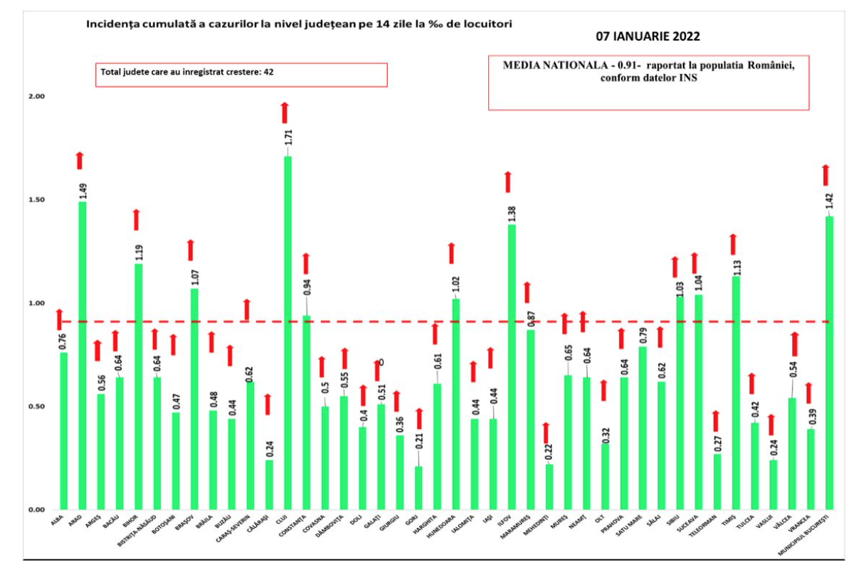 Minden megyében nő a fertőzési ráta, a legtöbb új esetet Bukarestben, illetve Kolozs, Temes és Iași megyében regisztrálták. Három város van, melyben meghaladta a 3 ezreléket a ráta: Pankota (Arad megye), Tusnádfürdő (Hargita megye) és Rădăuți (Suceava megye). Ezen túlmenően 37 község van hasonló helyzetben.