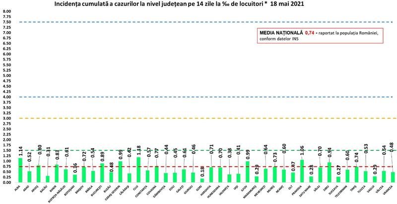A lakosságarányos fertőzöttségi ráta már csak Fehér (1,14), Kolozs (1,18) és Prahova (1,08) megyében haladja meg az 1 ezreléket, és mindenhol csökkenőben van.
